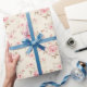 Embalaje de regalo de Rosas pintados de color rosa suave con fondo color crema claro.