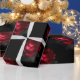 Papel De Regalo Rosas rojas con hojas grises en negro