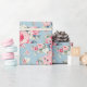Papel De Regalo Rosas rosadas de algodón en fondo azul