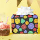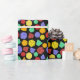 Este colorido papel de envoltura con estampado es perfecto para envolver regalos para los aficionados a juegos de rol y juegos de mesa de fantasía. Presenta ilustraciones de diferentes dados de múltiples lados en conjunto verde, púrpura, naranja, rojo y amarillo contra un fondo negro.