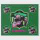 Set against bold pink and deep forest green, this rugged female athlete captures the unstoppable spirit of women’s tackle football—strength, resilience, and pure joy in every stride.
