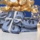 Papel De Regalo Rústica Wood look Scroll Pattern on Blue Backgroun