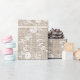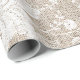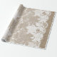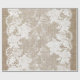 Papel rústico y elegante de envoltura en burlap color beige con motivos florales y un hermoso encaje blanco con bordes.