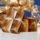 Feliz patrón de árbol de navidad Faux Gold Brown Patrón de baubles de árbol de Navidad con texto personalizado Navidades rústicos Regalo Papel de envolver