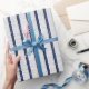 Papel De Regalo Rústico Gris Linen & Navy Blue Stripes Pattern