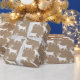 Papel rústico neutro de envoltura vacacional con un patrón blanco de reno sobre fondo de color kraft.