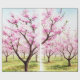 The painting depicts a landscape of blooming cherry trees, also known as "Sakura" in Japanese.