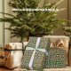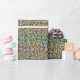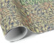 Un patrón abstracto, gráfico en un tejido rico, tejido, tapiz de; verde, rojo, amarillo, naranja, taupe, marrón y negro.