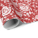 rosas blancas sobre un fondo rojo decoran este envoltorio de regalo Día de San Valentín. Diseñado para ti por Blackberry Boulevard.