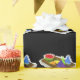 En un tablero de madera, de formas triangulares y redondeadas, se ha dispuesto una vibrante variedad de rodajas de sandía arcoiris. Los colores contrastantes contra el fondo neutro crean una presentación animada y apetitosa.
