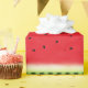 Una deliciosa sandía roja con semillas que pasan a una corteza y cáscara rayada.