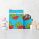 Un ilustracion de toda una sandía y una tajada de ella. La sandía es un fruto oblongo o esférico con una corteza exterior rayada verde u verde oscuro y una pulpa de color jugoso dulce rojizo o amarillento. Esta fruta puede ser sembrada o sin semillas. La sandía es una de las frutas refrescantes favoritas para el verano. Puedes comer esta fruta fresca y fría o preparar un delicioso batido de sandía. La sandía hidrata y proporciona buenos nutrientes a su cuerpo. Si ya ves muchas sandías en el mercado, es hora de decir "¡Hola, verano!".