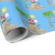 Sándano de nieve en la playa con gafas de sol y gorro de acolchado con una cuerda de luz de vacaciones bajo la palmera de los Navidades