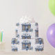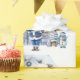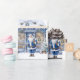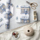 Santa Claus y un muñeco de nieve frente a una tienda de vacaciones