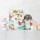 This Surfing Santa Christmas in July Coastal Wrapping Paper features jolly Santa in a Hawaiian floral shirt and red shorts, riding bright turquoise waves under swaying palm trees.