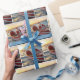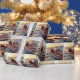 Santa Claus joyfully navigating a speedboat, with a festive red bag overflowing with toys spilling out as he glides across the water