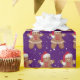 Galleta de pan de jengibre con un gorra de Santa Claus sobre un fondo morado con capa de copo de nieve superpuesta. Se puede cambiar el color de fondo.