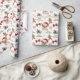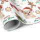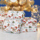 The repeated pattern on this Christmas wrapping paper includes an image of an adorable Chihuahua dog wearing a red and white Santa Claus hat. Also included in the pattern is a gingerbread man, a red bow, a holly sprig with red berries, and varied sizes of ornate gold snowflakes. Stylized red and green text says MERRY CHRISTMAS" and "HAPPY NEW YEAR". Be sure to see the many other products with dog images (and cats, too!) at Dog Village.