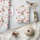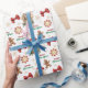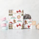 The repeated pattern on this Christmas wrapping paper includes an image of an adorable Toy Poodle dog wearing a red and white Santa Claus hat. Also included in the pattern is a gingerbread man, a red bow, and varied sizes of ornate gold and red snowflakes. Stylized red and green text says MERRY CHRISTMAS" and "HAPPY NEW YEAR". Be sure to see the matching gift tags in our store.