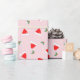 Cute pink and red wrapping paper with scattered Santa hats and tiny holidays icons. A playful and modern twist on classic Christmas themes.