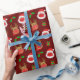 Papel De Regalo Santa Reindeer Face Mask Navidades rojos oscuros