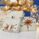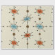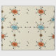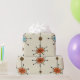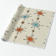 Un patrón de arte abstracto moderno de estilo vintage de mediados de siglo con estrenos de sputnik retro en naranja quemado y azul cielo.