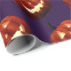 Este fresco papel de envoltura de cumpleaños de Halloween es perfecto para fiestas de Halloween o fiestas de cumpleaños en octubre. Este diseño presenta un fondo violeta profundo con calabazas aterradoras Jack O'Lantern en un patrón repetido. Perfecto para fiestas de cumpleaños de otoño o regalos de Halloween.