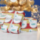 Este papel de envolvimiento de regalo para Navidades presenta círculos blancos con un borde de acuarela verde azulado moderno y un fondo rojo oscuro y dorado. El texto del personalizado dice: ¡SÉ MERCED!
