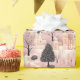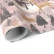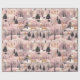 Elegante camino de venados a través de colinas rosas cubiertas de nieve entre un bosque de árboles negros en este delicado patrón invernal.