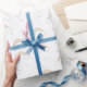 Diseño sencillo de papel de envolvimiento de arcoiris pastel. Se pueden encontrar productos coincidentes en la colección Fiesta Arcoiris.