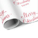 Papel de envoltura de vacaciones lindo con tipografía moderna y un diseño simple con "Feliz Navidad" en un elegante guión rojo junto con el nombre del destinatario. Este papel de envoltura de personalizado seguramente agregará un toque festivo a la donación de regalos de sus Navidades.