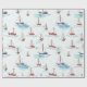 Papel De Regalo Serene Blue Red Sailing Bots on Sea Pattern