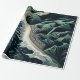 Serene Shores: This stunning top-down illustration captures the harmony of land and sea, featuring waves gently breaking on sandy beaches with lush green mountains in the background. Rendered in soothing shades of dark blue-green, the artwork evokes a sense of tranquility and balance. The intricate detail of the ocean’s patterns meeting the shore, paired with the trees lining the water’s edge, enhances the peaceful atmosphere. Created in a woodcut print style with simple lines and a flat design, the piece is reminiscent of hand-drawn animation, offering a timeless, serene depiction of nature’s beauty.