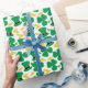 Este papel de regalo presenta un divertido y festivo patrón del Día de San Patricio. El gorra del leprechaun, las rocas verdes y las monedas de oro aparecen en un fondo blanco.