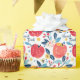 Shanah Tovah con manzanas jugosas, granadas, abejas y flores rosadas sobre fondo blanco, patrón repetido,