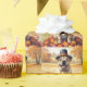 Una pintura acuarela de un perro alegre sentado en medio de un montón de hojas caídas vibrantes, rodeado de pequeñas calabazas y bellotas dispersas. El perro lleva un pequeño gorra peregrino y vigas de alegría, capturando el espíritu del Día de Acción de Gracias. Como telón de fondo, los campos de suave cosecha y los árboles de tonos dorados crean un ambiente campestre tranquilo. Las texturas suaves y los tonos cálidos y mudos del otoño le dan al lugar un ambiente acogedor y nostálgico, perfecto para celebrar la belleza de la temporada.