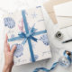 Infunde tu regalo con el encanto de la costa usando este impresionante papel de envoltura, con un divertido patrón de conchas marinas, estrellas de mar y divertidos textos inspirados en la playa. Los tonos azules de zafiro sobre un fondo opcional de marfil evocan un ambiente relajado de verano, casa de playa. Este diseño seguramente añadirá calidez y carácter a cualquier regalo. Busque ID918 para ver otras opciones de color para este diseño.