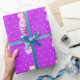 Silueta de gato y patrón de estrella blanca sobre fondo ultravioleta.