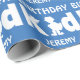 Papel de embalaje de encargo personalizado del color de la silueta del super héroe del muchacho del niño del cumpleaños. Personalizado con nombre en la fuente blanca. El texto lee al niño del cumpleaños. El I en niño es una silueta del muchacho del super héroe. Personalizar para cambiar color de fondo de azul a su opción de colores. Papel temático del muchacho del super héroe de la diversión para una fiesta de cumpleaños temática del super héroe. Papel de embalaje personalizado muchachos.