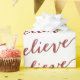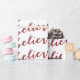 SIMPLE CREER QUE LA REUNIÓN DE VACACIONES | VERDE DE ORO ROJO. Diseño de Elke Clarke© para Galería de Monogramas. Tiene la palabra "Believe" en una tipografía de escritura roja, verde o dorada sobre un fondo blanco para crear un patrón elegante de palabras. Para otros colores, póngase en contacto con el propietario de la tienda.