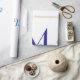 Papel De Regalo simple minimal monogram personalized name blue ret