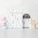 Este encantador diseño de papel de regalo presenta un patrón de unicornios Slumberkins que cubre toda la superficie, ubicado en una escena caprichosa e inspirada en la naturaleza. Unicornios rosados suaves aparecen en poses juguetonas y flotantes entre delicados árboles verdes, pequeñas bayas y suaves acentos botánicos. La paleta de colores de suave rubor y verde fresco crea una sensación ligera y mágica que es encantadora sin ser abrumadora. El diseño repetido añade movimiento y un toque caprichoso de cuento de hadas, manteniendo al mismo tiempo un aspecto general suave y equilibrado. Perfecto para cumpleaños, baby showers o celebraciones temáticas de unicornios, este diseño aporta un toque soñador de Slumberkins a cada regalo bellamente envuelto.