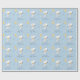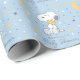 This highly customized gift wrap features a repetitive pattern of the beloved Snoopy character sitting and embracing a small yellow star, set against a calming light blue background speckled with stars and crescent moons, with the personalized text related to the Baby Shower printed throughout the design, making it a unique and specialized detail for wrapping gifts specifically for the celebration or as a distinctive party favor accent.