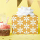 fondo amarillo con copos de nieve blancos