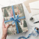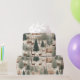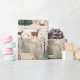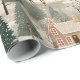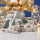 Un agradable escenario invernal con ciervos recorriendo un paisaje de casas de pueblo y robustos pinos.