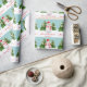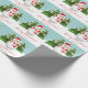 Este tema personalizado y festivo de los Navidades envolver papel presenta el ilustracion personalizado de Destei de un lindo muñeco de nieve. El muñeco de nieve lleva puesto un gorra rojo y una bufanda con rayas rojas y blancas. Su nariz está hecha de una zanahoria naranja y sus brazos están hechos de palos marrones. Detrás del muñeco de nieve hay dos abetos con algo de nieve sobre ellos. El color de fondo está verde azulado con un patrón de puntos como la caída de la nieve. Bajo la imagen se lee "¡Feliz Navidad!" en color rojo. También hay un área de texto personalizable donde puede escribir, por ejemplo, a quién es el regalo o de quién es.