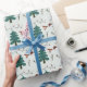 Papel De Regalo Snowmen verde y Navidades de árboles de Navidad