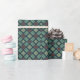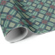 Este papel de envoltura, especialmente intrincado, presenta un patrón sofisticado que hace estragos en un control de tartán clásico con una rejilla geométrica de diamante. La paleta de colores es sobria y elegante, dominada por un fondo verde azulado sabio verde o polvoriento y líneas de fondo marino o carbón vegetal. En las intersecciones aparecen pequeños y sutiles acentos de color burdeos, lo que añade un toque de riqueza. Este diseño es perfecto para aquellos que aprecian un estilo masculino, vintage o sofisticado para los regalos que se dan durante las fiestas, aniversarios o celebraciones formales.