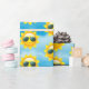 Sol sonriente lindo con gafas de sol aviadoras sobre fondo azul del cielo con nubes. Se puede cambiar el color de fondo.