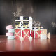 Soldados de los cazadores de nueces rojos blancos Envolver papel Hechiceros artesanales soldados de juguete con fondo blanco y diseño diagonal punteado
